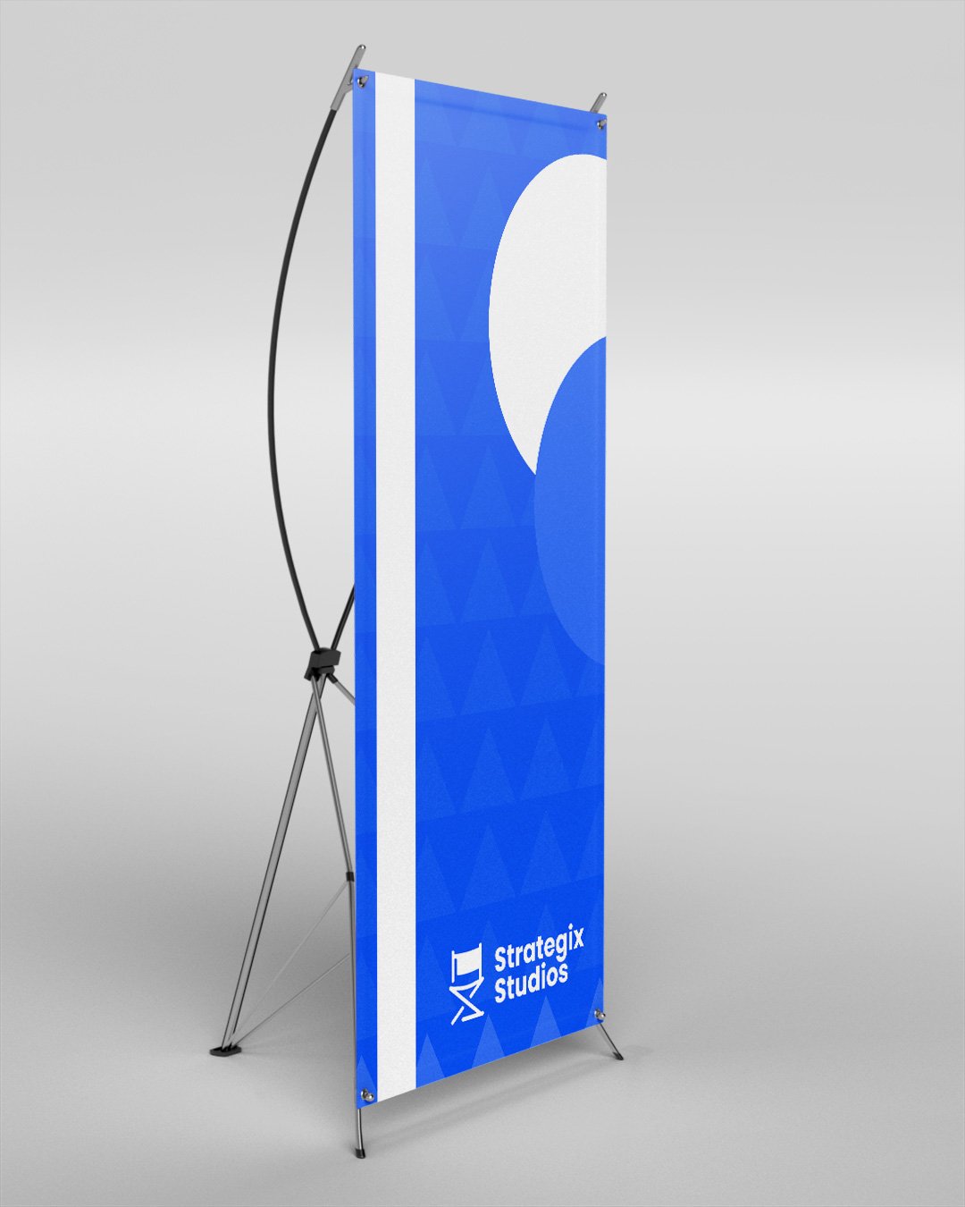Κέρδισε τις εντυπώσεις σε κάθε έκθεση, παρουσίαση ή επαγγελματικό χώρο με το μοναδικό X-Banner Strategix Studios. Ένα εντυπωσιακό εργαλείο προβολής που ενισχύει την εικόνα της επιχείρησής σου με στιλ και αποτελεσματικότητα.